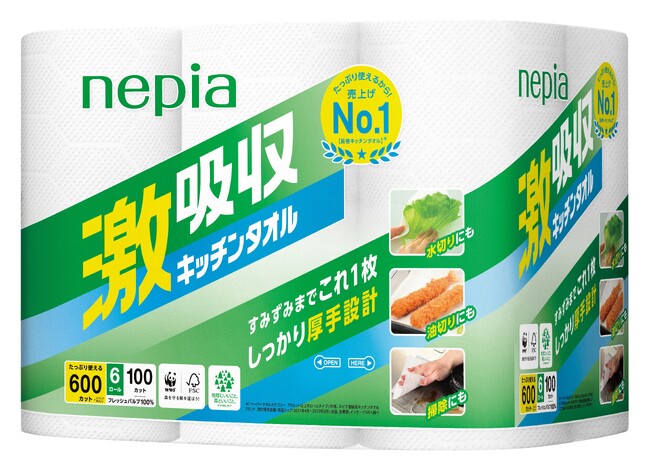 料理から掃除まで使える大人気「激吸収」シリーズにラインナップ追加「ネピア 激吸収キッチンタオル6ロール」新発売