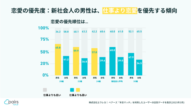 新社会人の男性は「仕事より恋愛を優先」 ペアーズ「本音マッチ」の回答結果からみえた、新社会人の恋愛の本音を公開
