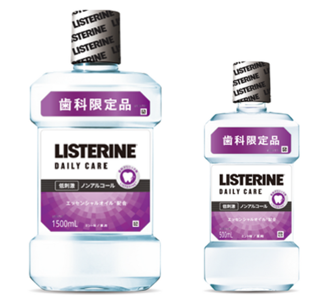 「歯科用リステリン(R)」は、お口の専門家によるアドバイスをもとに開発した歯科医院専売商品です。幅広い年齢層の歯科医院への来院者様を想定し、余計な混ざりものを気にする必要がないクリアなカラーと、口に含んでもピリピリしないマイルドなテイストで、歯科医院での施術前や通院後の自宅でも使えるようすっきりと爽やかな使い心地を実現しました。多様なニーズに合わせ、刺激が苦手な方でも使いやすい、低刺激・ノンアルコール処方となっています。