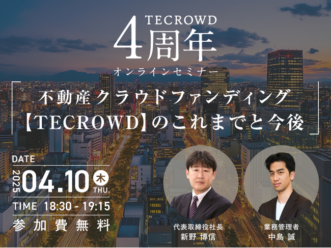 【4月10日(木)開催】不動産クラウドファンディングTECROWD(テクラウド)、4周年を記念しリアルタイムのオンラインセミナー実施