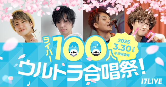 17LIVE株式会社(東京都渋谷区、代表取締役:ジャン・ホンフイ、URL:https://jp.17.live/)が運営する日本最大級のライブ配信アプリ「17LIVE(イチナナ)」では、日々配信を行うライバーと「17LIVE」が主体となって企画・実施する、100名以上のライバーが一堂に会し「合唱」にチャレンジするプロジェクト『【イチナナチャレンジ】ライバー100人ウルトラ合唱祭!』を、いよいよ今週末、2025年3月30日(日)14時より実施し、リアルタイムで公式配信を行いますので、お知らせいたします。