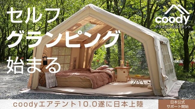 - キャンプのテントがグランピング空間に!エア注入だけで簡単設営、遂にcoodyが日本で本格始動