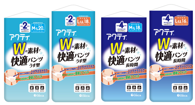 日本製紙グループの日本製紙クレシア株式会社〔住所:東京都千代田区神田駿河台4-6、代表取締役社長:安永敦美〕は、お腹まわりの伸縮素材と足まわりの肌着感覚素材のW(2種類)の素材を使用した紙パンツ「アクティ Wの素材で快適パンツ」を2025年4月1日(火)より新発売いたします。