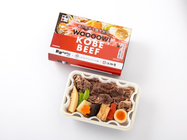 大阪・関西万博の開催地である大阪を代表するホテル「ホテルグランヴィア大阪」と、日本の食文化である駅弁の魅力を発信する駅弁販売店「旅弁当駅弁にぎわい」が、駅弁を通して旅をもっと素敵にしていただきたいという双方の想いから、駅弁のパイオニア淡路屋とともに「神戸牛すき焼き弁当」を開発しました。