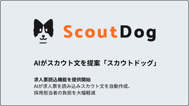 株式会社ウェザーライト(所在地:千葉県柏市、代表取締役:嶋根啓介)は、AIを活用してスカウトメールの文面提案を行う「スカウトドッグ」(https://info.scoutdog.io/)において、新たに求人票読込機能を提供開始したことをお知らせいたします。