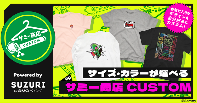 『サミー商店CUSTOM』とは、サミー公式グッズショップを販売するサミー商店が新しくグッズマーケット「SUZURI(スズリ)」にて展開する、アパレルカスタムショップです。