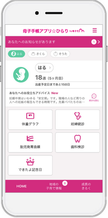 北海道当別町に採用された『母子手帳アプリ☆ひらり』は、スマートフォン・タブレット端末・PCに対応したサービスで、妊産婦と子どもの健康データの記録・管理や予防接種のスケジュール管理、出産・育児に関するアドバイスの提供、離れた地域に住む祖父母など家族との共有機能や、町が配信する地域の情報をお知らせするなど、育児や仕事に忙しい母親や父親を助けてくれる便利な機能が充実しています。