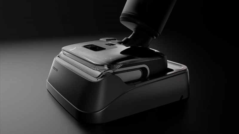 多機能スティック型水拭き掃除機は、使用後に専用のドックに設置することでローラーブラシの自動洗浄・高速乾燥を行い、ブラシを常に清潔な状態に保ちます。90℃※3の熱湯でローラーブラシを回転洗浄し、ローラーブラシに付着した頑固な汚れをきれいに落とします。また、乾燥機能は、5分間の高速乾燥と30分間の静音乾燥の2つの乾燥時間を選ぶことができ、使用状況に応じて柔軟に設定することができます。