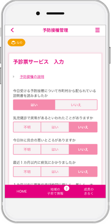 このシステムではこれまで煩雑であった予診票の作成がアプリを通じて行えるようになり従来の紙の手続きに伴う手間を大幅に削減することができます。また、接種後は、予防接種の結果や履歴がアプリに記録されるためワクチンごとの接種期間や前回からの接種間隔をデジタルで判定するため、安全かつ効率的に確認が可能となります。