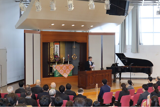 式典では、福田学長より入学者に、自分とは異なる考え方に出会ってもむやみに対立せず、理解する努力をして共に歩むという「同朋」の精神こそ、現代社会が最も必要なものだと信じて、それを今の言葉で「共なるいのちを生きる」と表現し、英語で「Living Together in Diversity」と翻訳していますと、入学する皆様へ、式辞が贈られました。学長式辞全文は本学HPで公開しています。