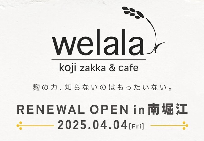 この春、大阪・堀江にて、2年半営業した「オーガニックセレクトショップwelala(ウィララ)」が、“麹”をテーマにした飲食と物販が楽しめる新感覚のお店「koji zakka & cafe welala」として、