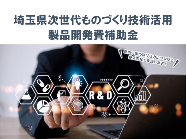 埼玉県では、県内の産業振興を図るため、技術イノベーションを創出する取組を実施しています。その一環として、県内中小企業が取り組むデジタル、バイオ、マテリアル、カーボンニュートラル分野における技術や製品の開発経費に対して助成を行います。
