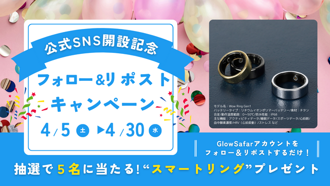 スマートリングが当たるチャンス!AI&ゲーミフィケーションを活用した健康支援アプリ「GlowSafar」が、公式SNS開設を記念してフォロー&リポストキャンペーンを開催!