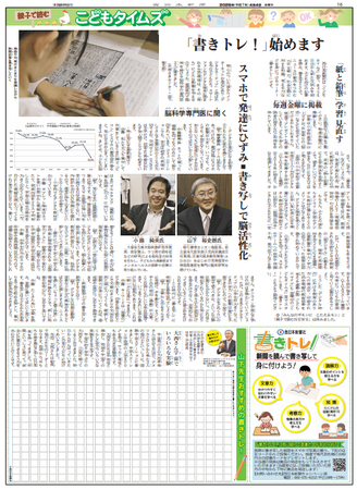 「デジタル時代」における教育のあり方への視点や、印刷された活字情報の教育効果を考える連載企画「こども×マナブ」も金曜付の「こどもタイムズ」面でスタートします。「書きトレ!」ともどもご期待ください。