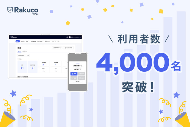 就労支援事業所向け業務効率化システム「Rakuco(ラクこ)」、利用者数4,000名を突破!