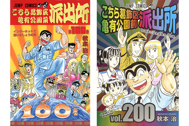 『こち亀』単行本100巻・200巻の表紙【(C)秋本治・アトリエびーだま/集英社】