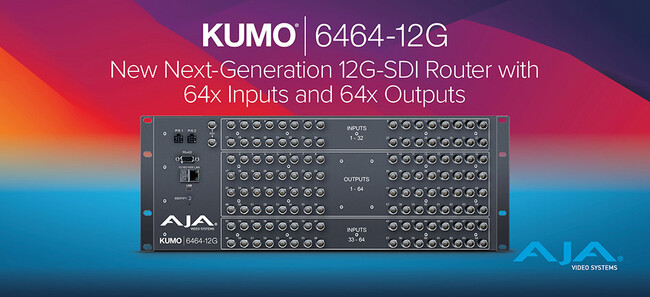 AJA Video Systemsは本日、高帯域幅でコスト効率の高い信号ルーティングを実現する、64系統の12G-SDI入力と64系統の12G-SDI出力を備えた大容量12G-SDIルーターの最新モデルKUMO 6464-12Gを発表しました。