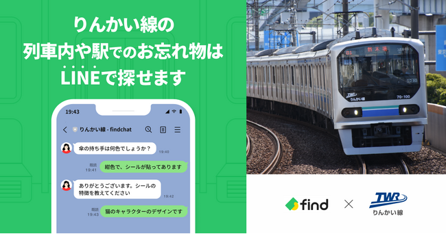 東京臨海高速鉄道株式会社(本社:東京都港区、代表取締役社長:西倉 鉄也、以下「りんかい線」)は、株式会社find(本社:東京都中央区、代表取締役CEO:高島 彬、以下「find」)が提供する「落とし物クラウドfind」を導入します。