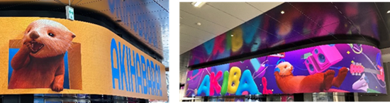 秋葉原の魅力を思い切り楽しむラッコが秋葉原駅を訪れた人々をかわいくお迎えし、映像空間を