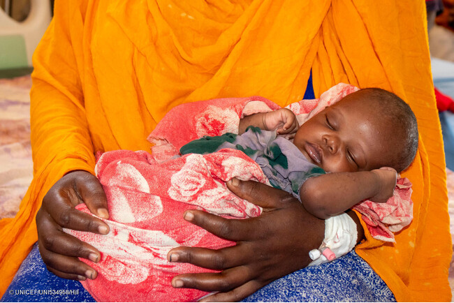 ユニセフが支援するトロケア産科病棟で、無事に生まれた女の子。母親は感染症で治療を受けている(ソマリア、2024年1月29日撮影) (C) UNICEF/UNI534958/Hill
