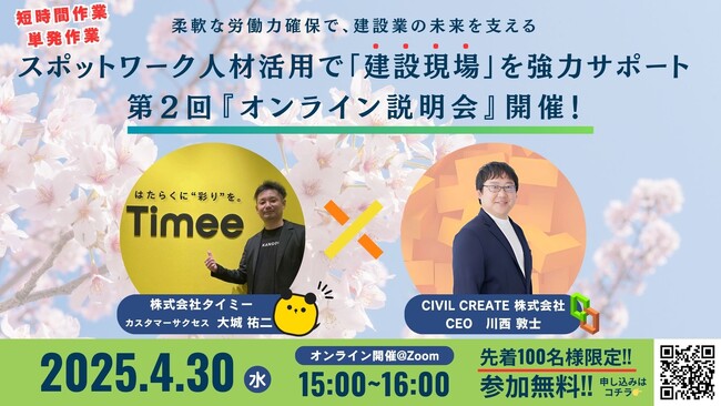 柔軟な労働力確保で、建設業の未来を支える スポットワーク人材活用で「建設現場」を強力サポート 第2回 『オンライン説明会』開催!