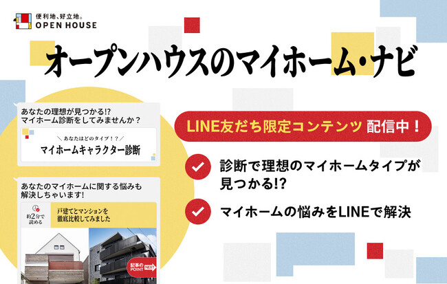 CMキャラ診断や家選びの相談など、オリジナルコンテンツがもりだくさん~ LINEお友だち追加キャンペーン実施、抽選で豪華プレゼントが当たる!~