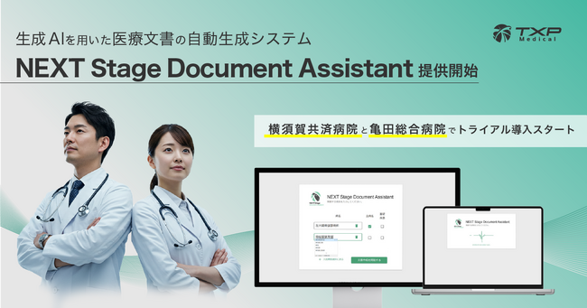 【TXP Medical】生成AIによる自動医療文書作成システム『NEXT Stage Document Assistant』を新たに提供開始し、横須賀共済病院と亀田総合病院にてトライアル導入