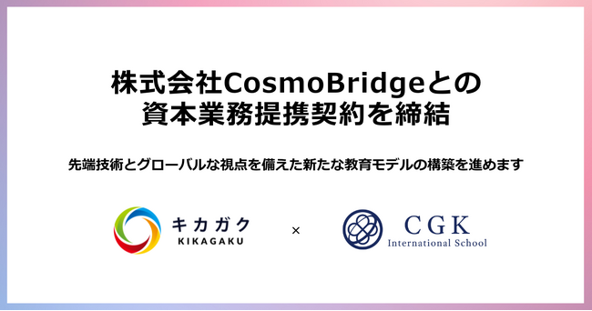 株式会社キカガク(本社:東京都、代表取締役:大崎将寛、以下当社)は、株式会社CosmoBridge(本社:神奈川県、代表取締役:甲斐実、以下 CosmoBridge 社) と、資本業務提携契約を締結しましたので、お知らせいたします。
