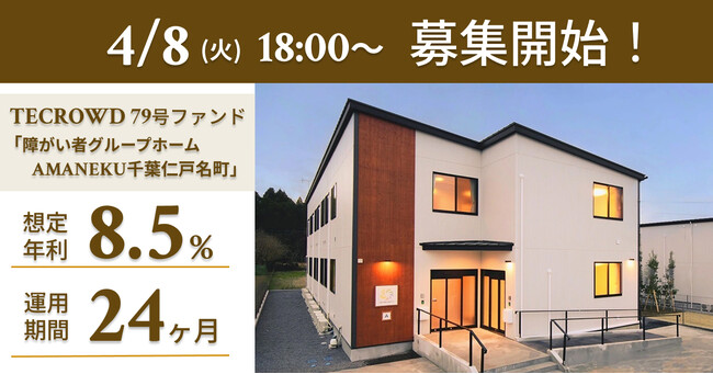 2025年4月8日(火)18時より79号ファンド「障がい者グループホーム AMANEKU千葉仁戸名町」の募集を開始いたします。