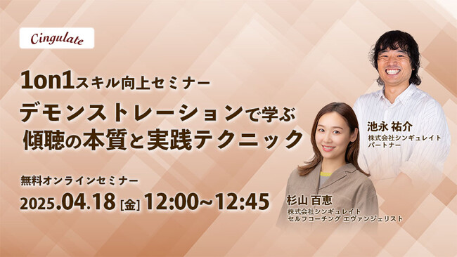 シンギュレイト、大好評の1on1スキル向上セミナー「デモンストレーションで学ぶ傾聴の本質と実践テクニック」を4月18日(金)12時より開催