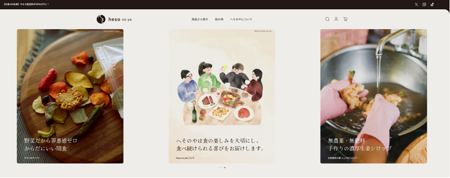 無添加や自然食品のお店「へそのや」の公式オンラインショップ(URL:https://hesonoya.com/)を正式にオープンいたしました。