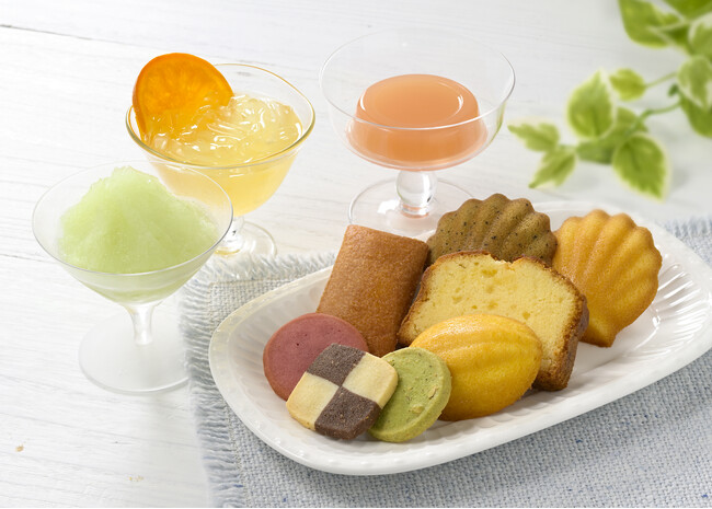 特長:フルーツ果汁やピューレを使用した、みずみずしく口あたりなめらかな「フリュイジュレ」。フルーティーでなめらかなおいしさを凍らせて楽しむ「フルーツシャーベット」。風味豊かに焼き上げた2種のマドレーヌと、4種のクッキーを詰め合わせました。バラエティ豊かなゼリーとアソートをお楽しみください。