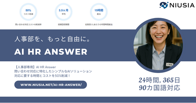 AI技術を活用した先進的なサービスを提供する株式会社ニュウジア(本社:東京都、代表取締役:柏口之宏)は、企業の人事部門における業務負荷の大きい「従業員からの問い合わせ対応」に特化したシンプルなAIソリューション『AI HR Answer(AI HRアンサー)』を、2025年4月8日より正式に提供開始しました。