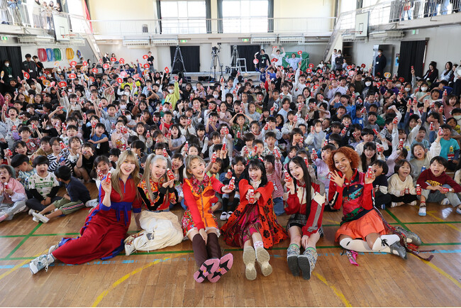 生徒約420人の前で「Run」や「世界はあなたに笑いかけている」を披露!さらに、これから始まる通学をそっと見守る、通学路応援広告「通学路は滑走路になる」を公開!