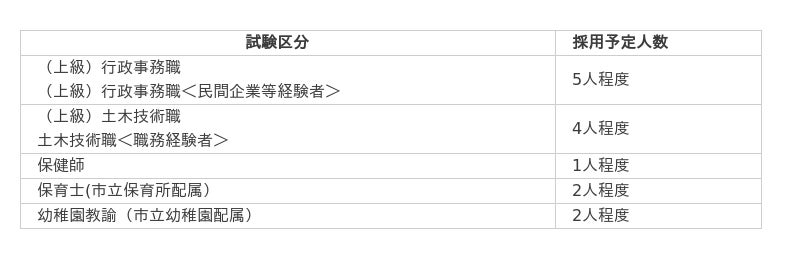 令和7年度鳴門市新規採用職員を募集しています。採用予定職種や人数は以下の表のとおりです。