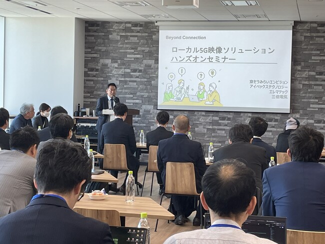 京セラみらいエンビジョン株式会社(本社:東京都港区、代表取締役社長:金 炯培)は、2025年2月19日(水)、アイベックステクノロジー株式会社(本社:神奈川県川崎市、代表取締役社長:森田 年一)、エレマテック株式会社(本社:東京都港区、代表取締役社長:大越 浩一)、三信電気株式会社(本社:東京都港区、代表取締役:鈴木 俊郎)と共同で、ローカル5G関連ソリューションに関する完全招待制イベント「Beyond Connection:ローカル5G映像ソリューションハンズオンセミナー」を開催いたしました。