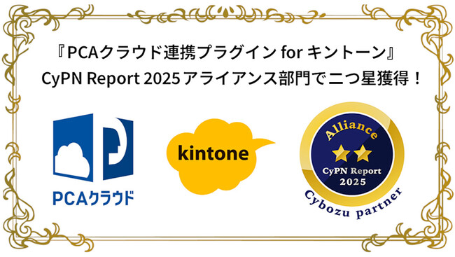 『PCAクラウド』や『PCAサブスク』をはじめとする、サブスクリプション型基幹業務システムを開発・販売するピー・シー・エー株式会社(代表取締役社長:佐藤文昭 本社:東京都千代田区 プライム銘柄コード9629 以下:PCA)は、サイボウズ株式会社が提供する業務改善プラットフォーム『kintone」と、『PCAクラウド』とのノーコード連携を可能にするプラグイン『PCAクラウド連携プラグイン for キントーン』 が、サイボウズ株式会社のパートナー評価制度「CyPN(Cybozu Partner Network)Report 2025」アライアンス部門において二つ星の評価を獲得したことをお知らせいたします。