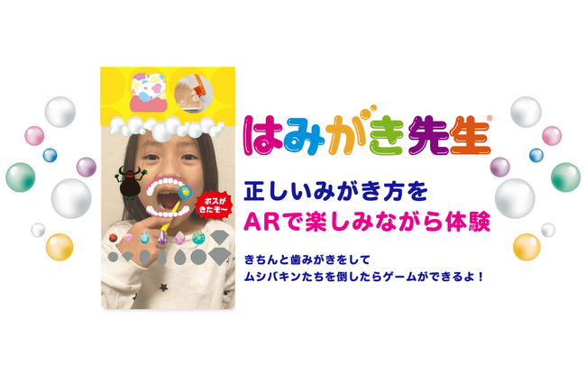 「はみがき先生」は、はみがきの正しい知識とみがき方を学ぶことができ、幼少期から使い続けることで、ママ・パパの悩みや不安を解決します!