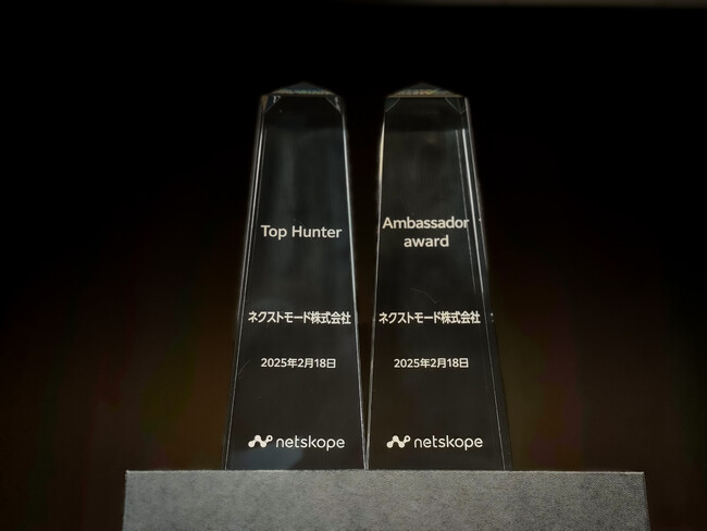 ネクストモードは、Netskope Japan株式会社が主催する2025年度のNetskope Japanパートナー・アワードにおいて、「Top Hunter award」「Ambassador award」を受賞したことを発表いたします。