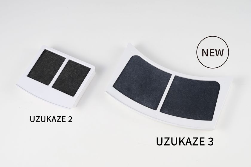 「UZUKAZE 3」は、羽のないシーリングファンライト「UZUKAZE」シリーズの最新モデルです。改良された吹出口により、前モデルよりも素早く風を行き渡らせ、効率的なお部屋の空気循環を実現。シリーズ最大のHEPAフィルターと新機構のUV-A×光触媒による脱臭機能を搭載し、空気清浄機能も向上したシリーズ最高傑作です。