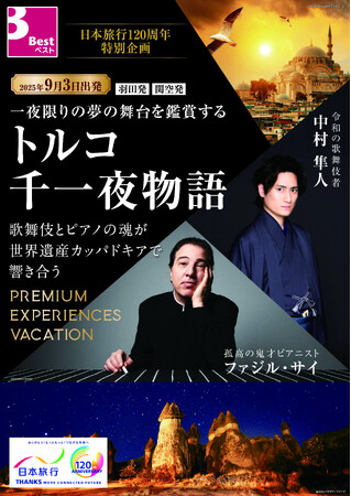 株式会社日本旅行(本社:東京都中央区、代表取締役社長:小谷野悦光)は、海外企画商品であるBESTツアーにて、歌舞伎の舞とピアノの奏を鑑賞する特別企画 『トルコ千一夜物語』を2025年4月10日(木)に発売します。本ツアーは、日本旅行創業120周年特別企画です。