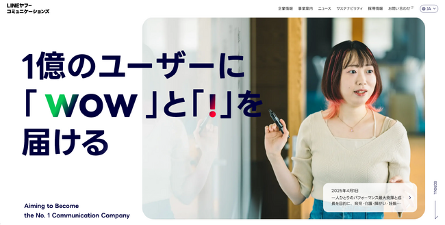 LINEヤフー株式会社(以下、LINEヤフー)の100%出資子会社であり、LINEヤフーサービスの運営業務を担うLINEヤフーコミュニケーションズ株式会社(本社:福岡市博多区、以下当社)は、2025年4月1日にコーポレートサイトを全面リニューアルいたしました。