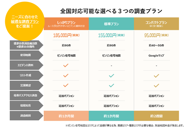 【全国対応可能】10万円以下で提供可能な徒歩分数などの不動産周辺環境調査サービス(コンパクトプラン)を新たにスタート