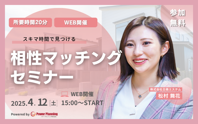 4月12日(土) 15時より、スキマ時間を活用して自分に合った不動産投資の担当者を探すことができる、松村 舞花講師との「相性マッチングセミナー(無料)」を開催いたします。