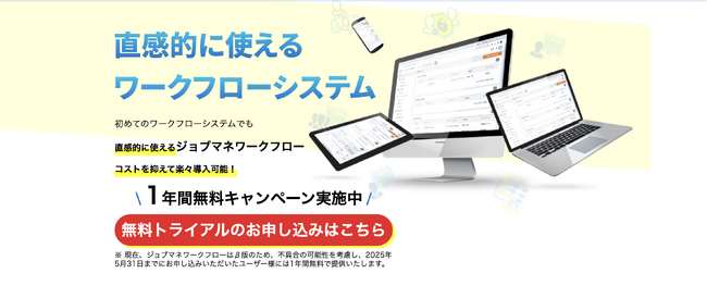 「ジョブマネワークフロー」正式リリース!5月31日までのお申込で1年間無料に