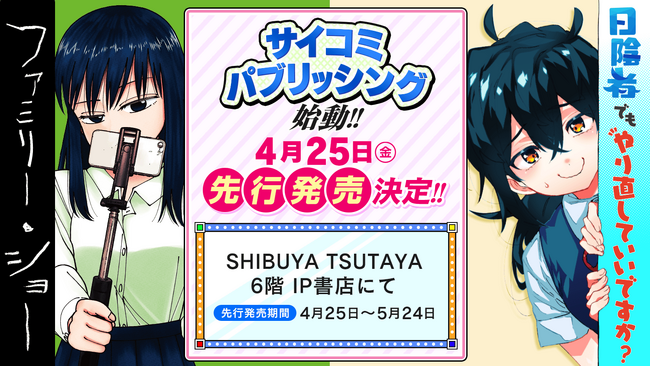 「サイコミ」自社出版企画“サイコミ・パブリッシング”始動!第一弾として期待の新作2タイトルの紙書籍をSHIBUYA TSUTAYA 6階 IP書店にて4月25日から先行発売!!