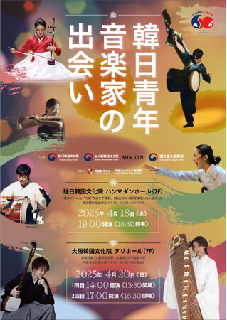 韓日の若い音楽家たちの交流公演が4月20日(日)、駐大阪韓国文化院(キム・ヘス 院長、以下文化院)ヌリホールで、文化院、MIN-ON、韓国国立釜山国楽院との共催で開催されます。