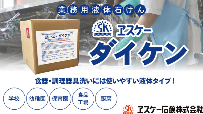 ヱスケー石鹸株式会社(東京都北区 五代目社長 倉橋和良 以下エスケー石鹸)は、業務用食器洗い液体石けん「エスケーダイケン」を2025年4月にリニューアル発売しました。学校、幼稚園、保育園、食品工場、厨房向けに自治体、行政機関、業務用品ルートで販売します。