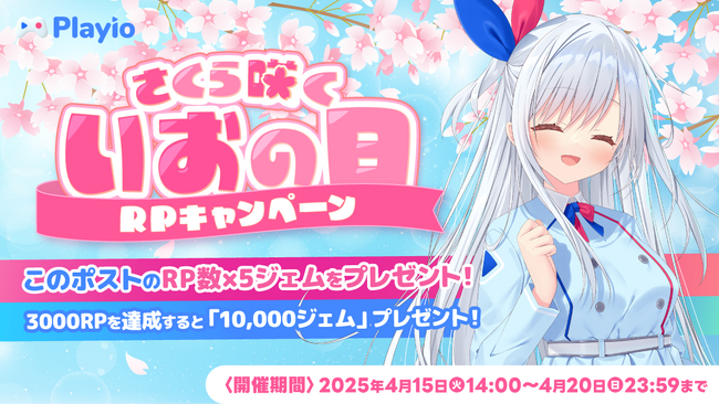 2025年4月15日(火)14:00に、Playio公式X(https://x.com/Playio_io)にさくら咲く!いおの日リポスト(RP)キャンペーンのお知らせが投稿されます。