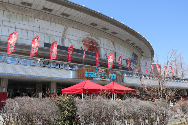パーティーの後は、徒歩10分ほどの距離にある「おおきにアリーナ舞洲」に場所を移します。お天気にも恵まれ、3月下旬とは思えない暖かな日差しの中、移動中も会話が弾みます。パーティー参加者は、ドリンクチケットで購入したビールで乾杯したり、キッチンカ―で軽食を購入したりと、試合会場の雰囲気を堪能しながら、用意された観戦席へと向かいます。